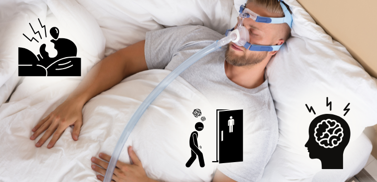 睡眠時無呼吸症候群の主な症状には、家族から指摘されることの多い大きないびき、夜間の頻尿、朝の頭痛、日中の強い眠気などがあります。