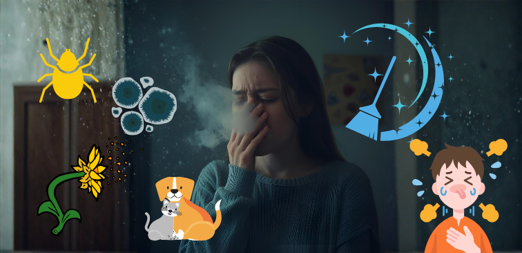 掃除は本来きれいにするための行為ですが、やり方次第ではアレルゲン(ダニ・カビ・ハウスダスト・花粉・ペット由来の皮膚片など)が空気中に広がり、喘息をお持ちのご家族が症状を起こしやすい環境になってしまいます。