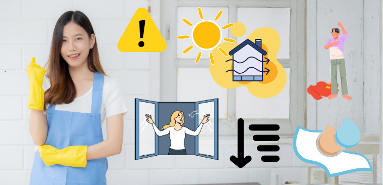 掃除の前後だけでなく、途中で窓を開ける・換気扇を回すなど、作業中にもこまめな換気を取り入れましょう。