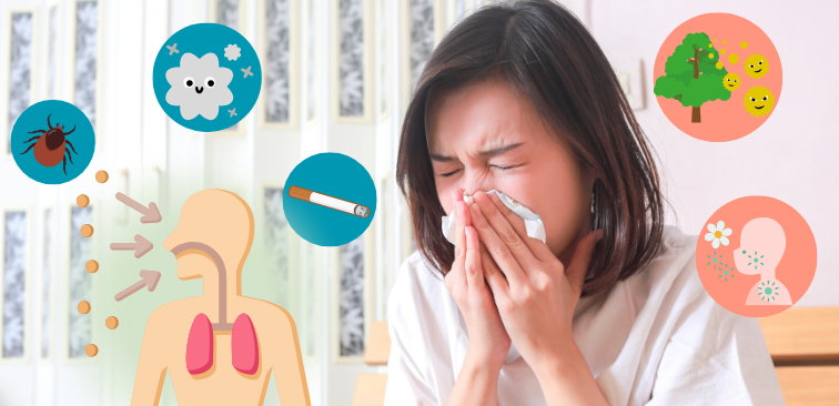 喘息には、ホコリやダニ、花粉などアレルゲンが引き金となるアレルギー型の喘息と、タバコの煙やストレスなどアレルギー以外の要因で起こる非アレルギー型の喘息があります。