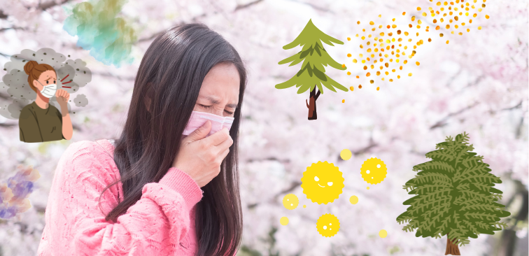 春は他の季節に比べて大気中の花粉量が非常に多くなるため、花粉症の有無にかかわらず気道への影響に注意が必要です。