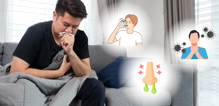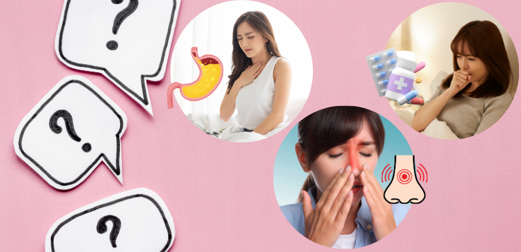 特に横になると症状が悪化しやすく、鼻閉感や痰の絡みを伴うことが多いです。