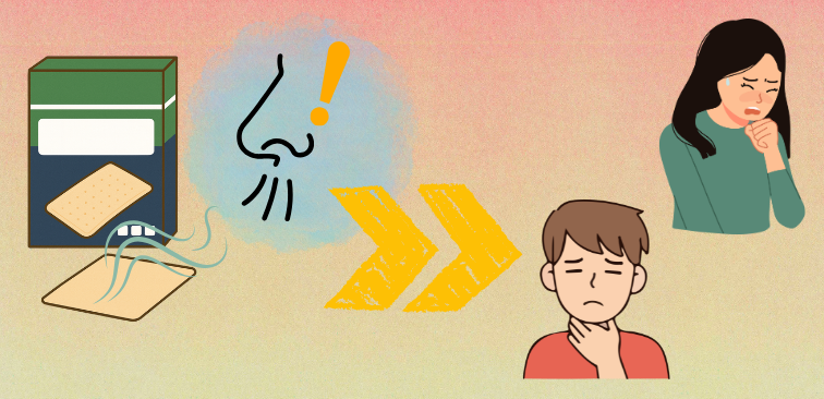 (1) におい(メントールなどの清涼成分):スーッとする清涼感のもとになる成分が空気中に広がり、気道を刺激することがあります。