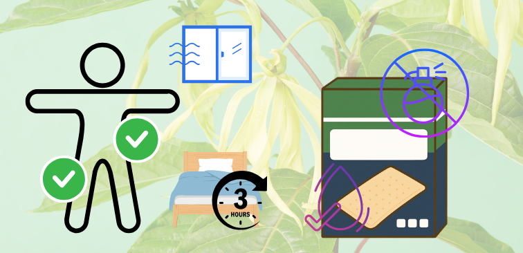 (3) 貼る部位と環境:胸や首の近くは呼吸に関係する部位のため影響を受けやすく、また就寝前や換気が不十分な部屋では成分がこもりやすくなります。