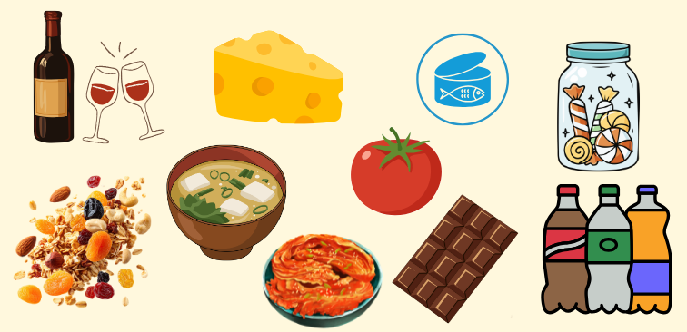 これらの食品を大量に摂取すると、アレルギー反応がなくてもヒスタミンの作用によって咳や喉の症状が出ることがあります。